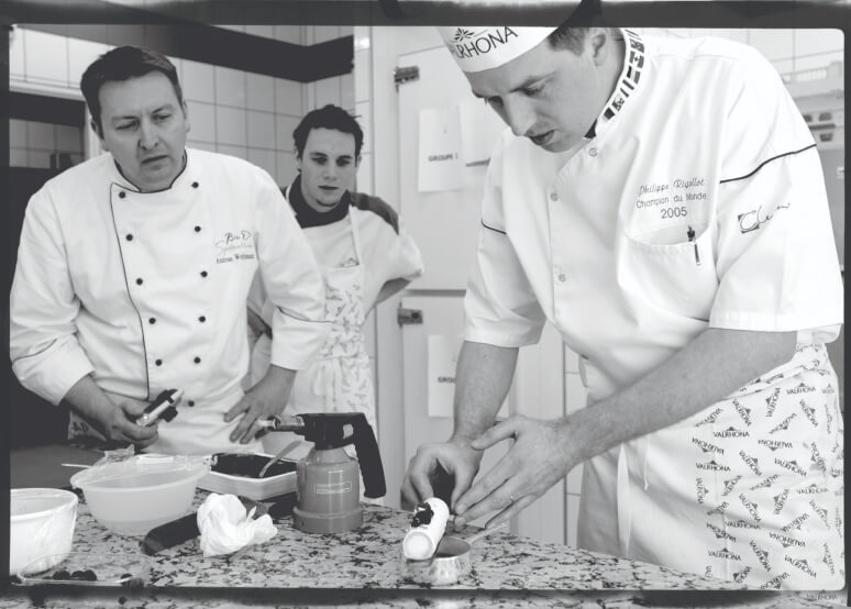 Jean-Noël Bongrain, director of the major French cheese-making group which shared his name, bought Valrhôna and developed its notoriety not only among the wider public but abroad too. The company lost the accent on its name and started being spelled in capital letters: VALRHONA