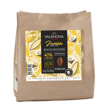 JIVARA 40% Milk Chocolate's distinctive flavor, both mild and chocolatey, unveils notes of caramel and vanilla enhanced with a touch of malt.
