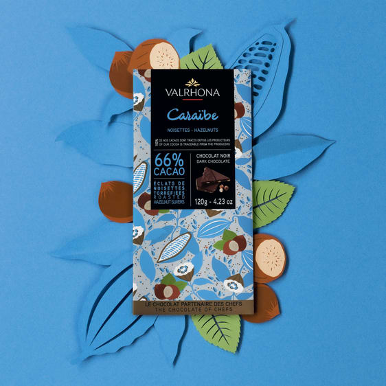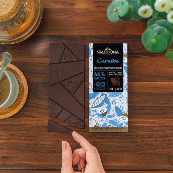 Created in 1988, Caraïbe is a wonderfully balanced chocolate with a mellow, well-rounded flavor. Thanks to its great equilibrium Caraïbe has become L’École Valrhona’s benchmark product. Its authentically chocolatey flavor makes it a popular choice for kitchen trials. Its profile is more accessible than Guanaja’s so it is a great favorite, particularly among children. Caraïbe’s name pays homage to the diversity of the Caribbean islands, whose cocoa beans inspired its creation.