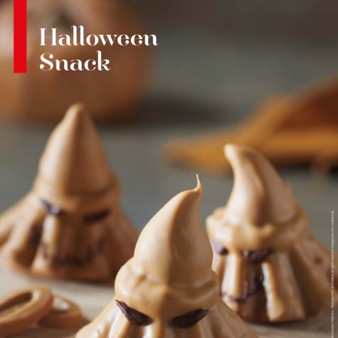Use a piping bag with a 12mm nozzle to pipe the caramel and DULCEY 35% crémeux into a hat shape on the cakes’ underside.
