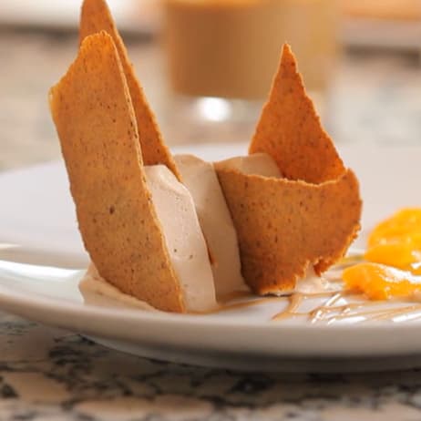 Use a small palette knife to coat the ice cream bar molds with 10g of Tropical Iced Mousse and place in the freezer. Churn the ice cream. When churned, marble the ice cream with 500g of Tropical Iced Mousse. Fill the molds, insert the ice cream sticks and blast freeze. Heat the coating mixture to 40°C (104°F) and mix with the crushed Breton Shortbread. Unmold the ice cream bars and dip in the coating mixture at 35°C (95°F). Store at -18°C (-0.4°F). Serve at between -12°C and -14°C (7-10°F).TIP: The Dulcey Ice Cream can also e served in a 500ml pots to share or in a large container for on the go.