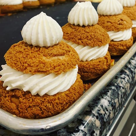 Remove the vanilla bean from the cream and gradually pour the cream into the caramel mix. Heat to 250°F (120°C).