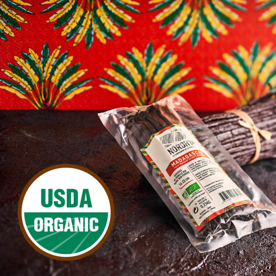 These Organic Vanilla Beans are processed and refined using traditional techniques. It takes over six months for these black non-split vanilla beans to attain all their excellent quality, and they are monitored with the utmost care through every step in the process. Traditional skills are used to sort beans into similarly sized bunches and bind them with raffia. Norohy is the only vanilla brand that then packages vanilla on-site in Madagascar in order to keep even more of the value chain benefitting the local community.